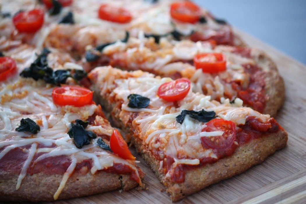 A tésztát mivel eléggé ragadós ezért olívaolajjal megkent sütőpapíron kinyújtjuk, megkenjük tejföllel vagy paradicsomszósszal, meszórjuk sajttal és a többi feltéttel. 170c sütőben kb 20 perc alatt készre sül.